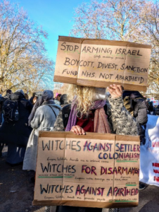 STOP ARMING ISRAEL, BOYCOTT DIVEST SANCTION; WITCHES FOR DISARMAMENT, WITCHES AGAINST SETTLER COLONIALISM AND APARTHEID