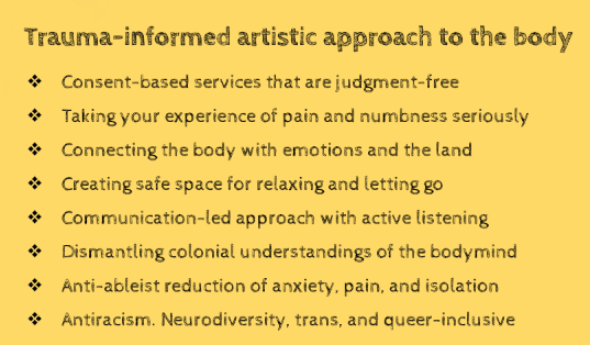 — queer and/or people of colour who have been forced to disconnect from their bodies under oppressive norms of gender, colonialism, and sexuality.